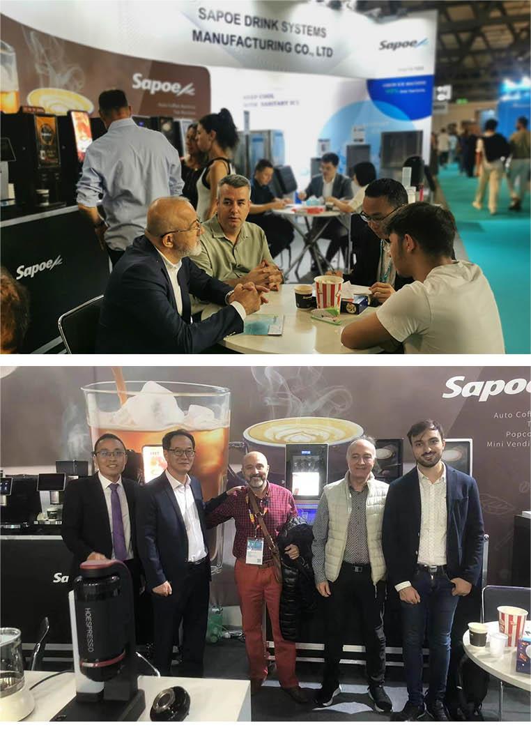 During 5 days exhibition, the Sapoe booth was crowded with people. They were very interested in our new products, especially the coffee how to make by our machine and the popcorn produced by the popcorn machine are amazing.